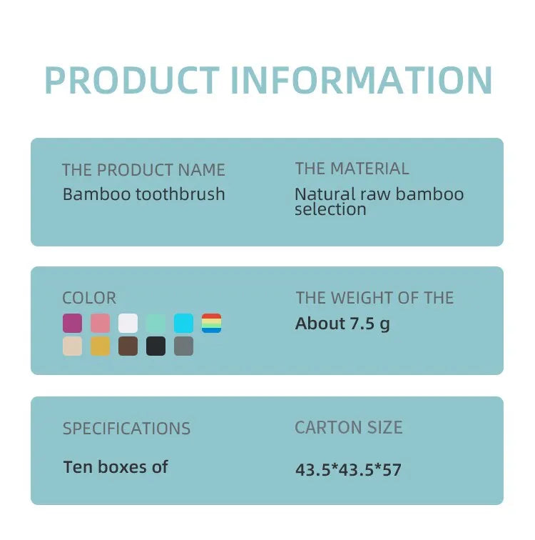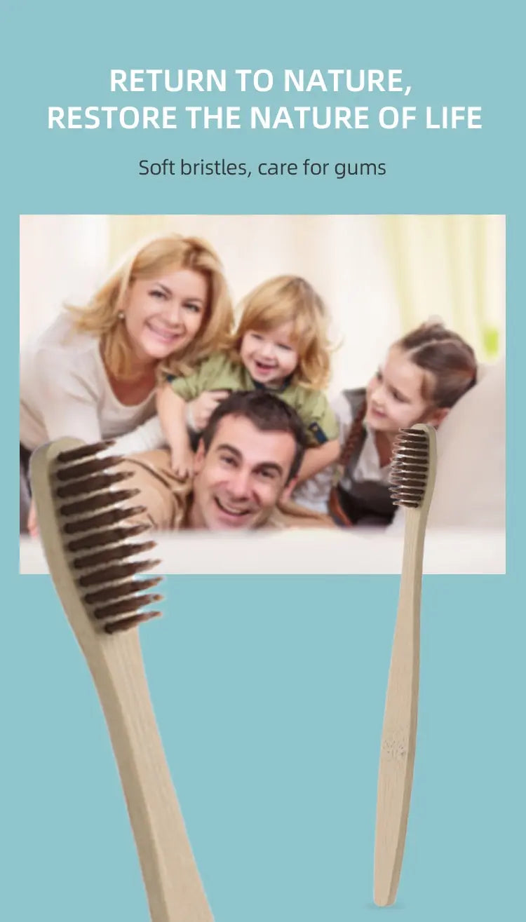 Discover our Natural Bamboo Toothbrush Set - the perfect eco-friendly alternative for your oral care routine. Each set includes 10 premium bamboo toothbrushes with soft bristles that provide gentle yet effective cleaning.